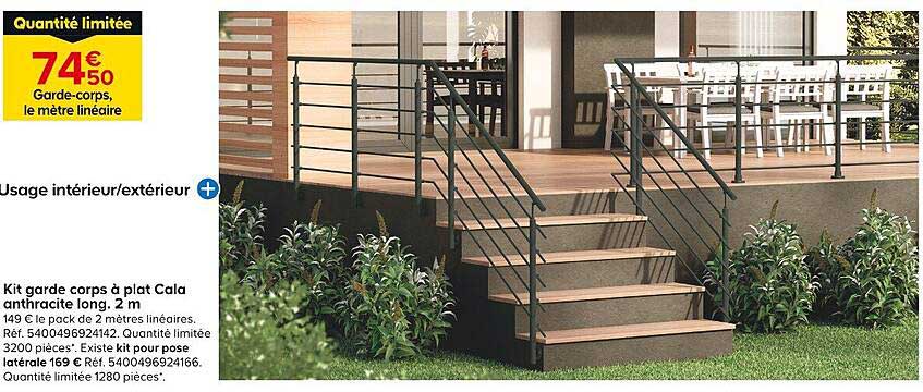 Découvrez notre incroyable offre sur le garde-corps Cala anthracite, essentiel pour sécuriser vos espaces intérieurs et extérieurs ! À un prix très attractif, ce kit de garde-corps est parfait pour tous ceux qui souhaitent allier sécurité et élégance. Ne manquez pas cette opportunité : sur cette page, vous trouverez une solution esthétique et pratique pour votre maison.
