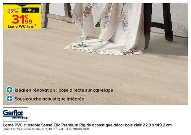 Transformez votre intérieur avec cette offre exceptionnelle sur les lames PVC de Gerflor. À partir du 14 octobre 2025, vous pouvez profiter d'un prix imbattable pour le revêtement de sol idéal en rénovation. Parfait pour une pose directe sur carrelage, ces lames sont pratiques, esthétiques et économiques.