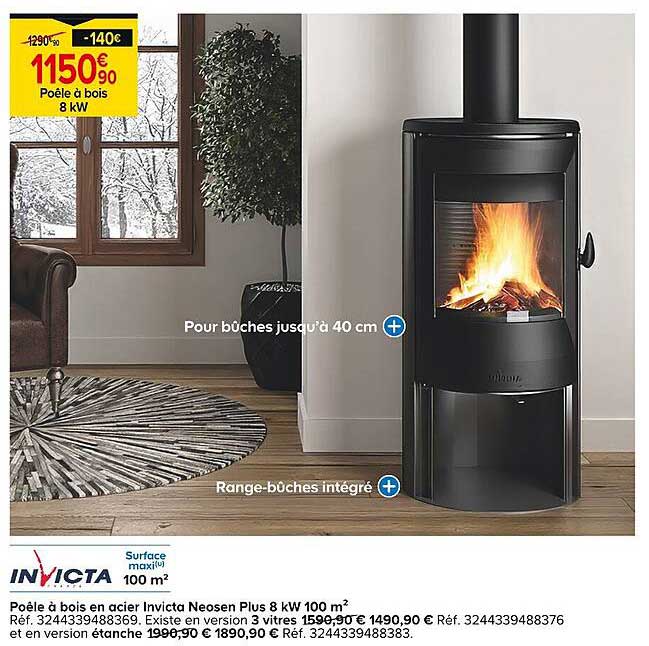 Découvrez dès maintenant la offre Poêle à bois en acier Invicta Neosen Plus 8 kW 100 m² dans le catalogue de Castorama. Cette offre est valable du 15/10/2025 au 03/11/2025.