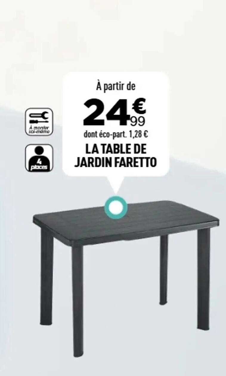 Si vous cherchez une solution pratique et esthétique pour aménager votre extérieur, ne manquez pas cette offre sur la table de jardin Faretto. À partir de 24,99€, profitez d'un meuble qui allie confort et style pour vos repas en plein air avec famille et amis.