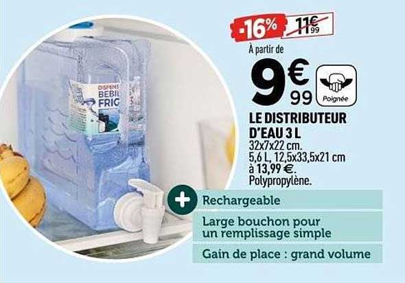 Actuellement, vous pouvez obtenir ce distributeur d’eau à partir de 9,99 €, au lieu de 11,99 € ! Cela représente une réduction de 16 %, ce qui fait de cette offre une opportunité d'économiser tout en ajoutant une touche pratique à votre quotidien. Pourquoi se priver ?