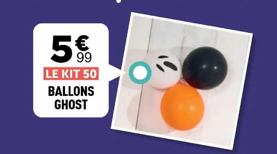 Préparez-vous pour les festivités avec une offre qui va enchanter petits et grands ! Le Kit 50 Ballons Ghost, proposé à un prix imbattable, est l’accessoire parfait pour toutes vos célébrations d'Halloween ou de fêtes à thème. Avec cette belle collection colorée, vous ne passerez pas inaperçu !