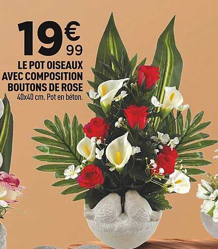 Découvrez l'offre de Le Pot Oiseaux Avec Composition Boutons De Rose chez Centrakor! Cette offre fantastique est maintenant disponible dans le nouveau catalogue de Centrakor. Profitez de cette occasion et économisez considérablement sur votre achat.
