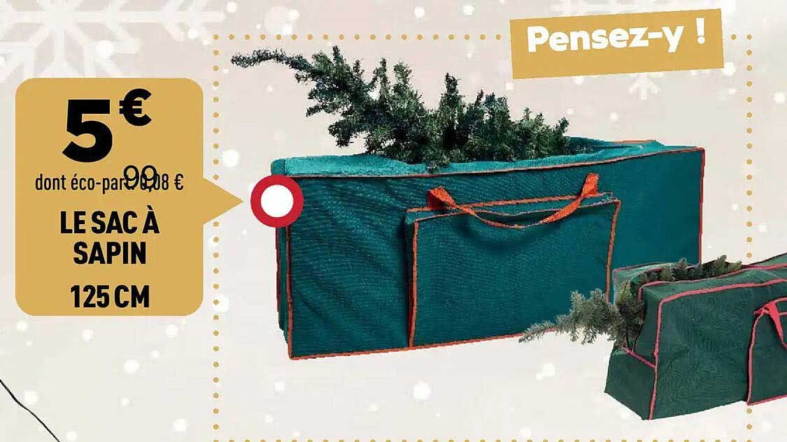 Préparez-vous pour les festivités avec notre offre sur le sac à sapin de 125 cm ! Ce sac est spécialement conçu pour protéger votre sapin de Noël pendant le stockage. À un prix incroyable de 5 €, c'est une occasion à ne pas manquer pour assurer la longévité de votre décoration hivernale.