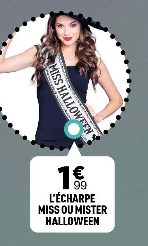 La saison d'Halloween approche à grands pas, et quoi de mieux pour célébrer cet événement que de se distinguer avec l'écharpe Miss ou Mister Halloween ? Disponible à un prix exceptionnel de seulement 1,99 €, cette écharpe est le complément parfait pour vos soirées costumées ou vos événements festifs. Montrez votre esprit d'Halloween et attirez tous les regards avec cet accessoire incontournable !