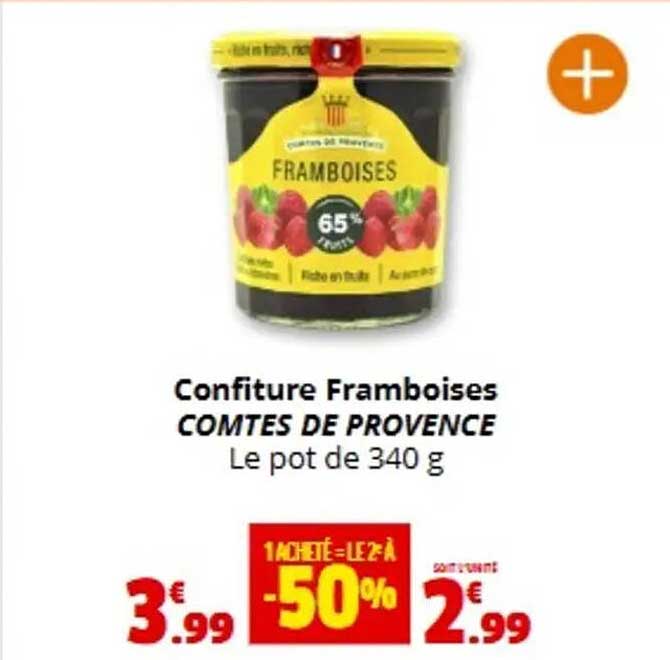 Découvrez la délicieuse confiture de framboises COMTES DE PROVENCE, une vraie tentation pour les amateurs de douceurs fruitées. Avec 65% de fruits, cette confiture est à la fois savoureuse et authentique, parfaite pour sublimer vos petits déjeuners, vos pancakes ou même vos desserts. Avec cette offre, vous pouvez profiter de cette gourmandise à prix réduit, une opportunité à ne pas manquer !
