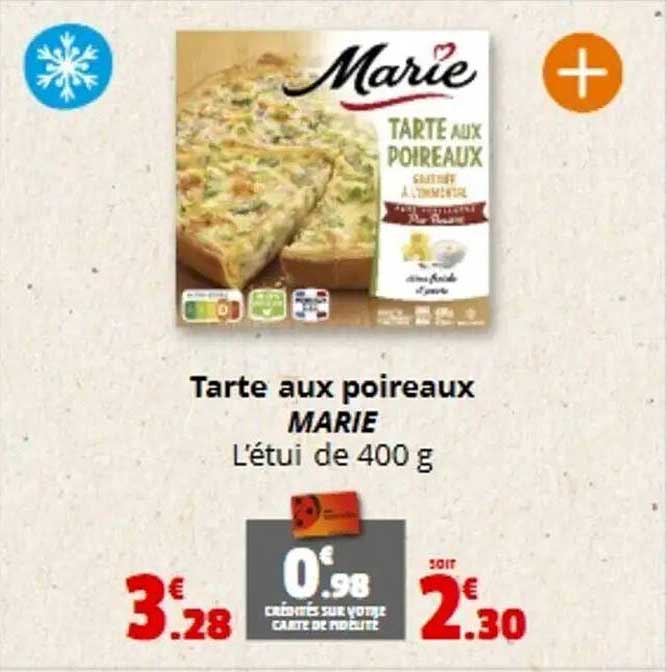 Découvrez la délicieuse Tarte aux poireaux de la marque Marie, une option savoureuse pour vos repas en famille ou entre amis. Parfaite pour un dîner rapide ou un pique-nique, elle allie simplicité et goût authentique.