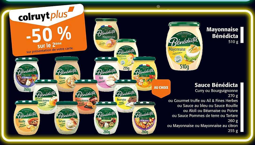 Découvrez une promotion exceptionnelle sur la gamme de sauces Bénédicta chez Colruyt ! Du 8 au 19 octobre 2025, profitez de 50 % de réduction sur le deuxième produit de la sélection, sur présentation de votre carte. C'est l'occasion parfaite pour redécouvrir ces sauces qui font la joie des repas en famille et des barbecues entre amis.