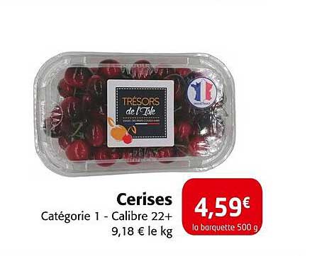 Découvrez les délicieuses cerises de la catégorie 1, calibre 22+, disponibles en barquette de 500 g. C'est la saison parfaite pour savourer ces petits trésors sucrés, idéaux pour vos desserts, salades ou à déguster simplement en collation. Profitez de cette offre alléchante, valable du 28 mai au 1er juin 2025.