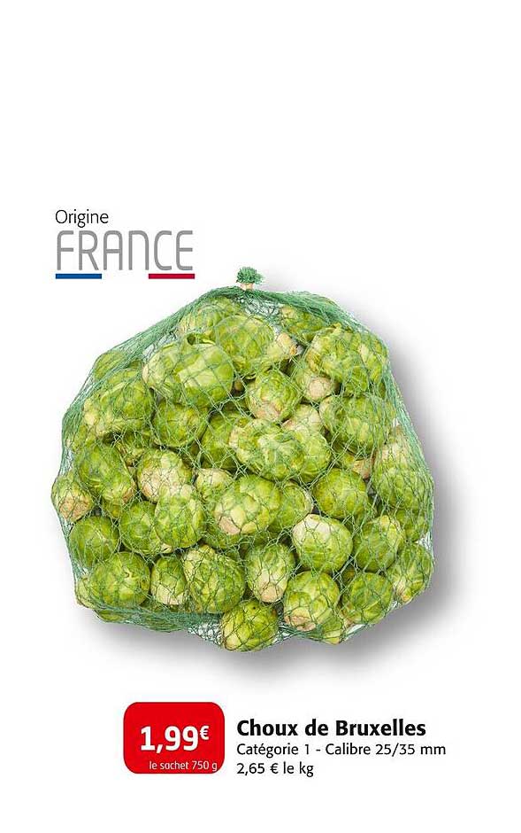 Découvrez dès maintenant la offre Choux de Bruxelles dans le catalogue de Colruyt. Cette offre est valable du 29/10/2025 au 02/11/2025.