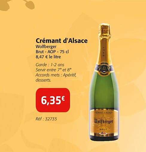 Découvrez dès maintenant la offre Crémant d'Alsace Wolfberger dans le catalogue de Colruyt. Cette offre est valable du 26/03/2025 au 20/04/2025.