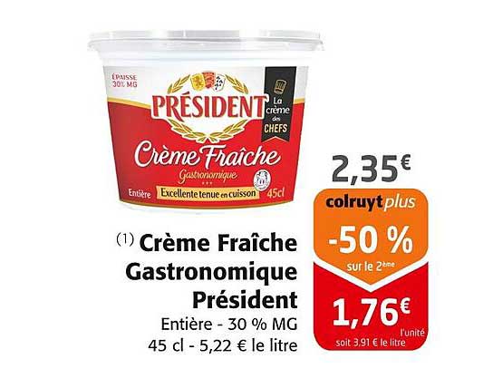 Découvrez dès maintenant la offre Crème Fraîche Gastronomique Président dans le catalogue de Colruyt. Cette offre est valable du 05/11/2025 au 16/11/2025.