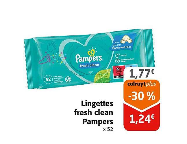 Découvrez dès maintenant la offre Lingettes fresh clean Pampers x 52 dans le catalogue de Colruyt. Cette offre est valable du 05/11/2025 au 16/11/2025.