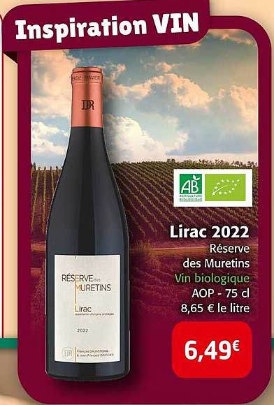 Découvrez la Réserve des Muretins avec ce vin biologique Lirac 2022. D'une qualité remarquable, ce vin est idéal pour les moments de convivialité entre amis ou en famille. Profitez de cette offre spéciale et régalez vos papilles avec un excellent rapport qualité-prix.