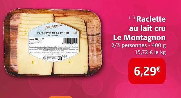 Vous êtes amateur de fromage ? Ne manquez pas cette offre exceptionnelle sur la Raclette au lait cru Le Montagnon ! Parfaite pour des soirées conviviales, cette raclette est un incontournable lors de vos repas d'hiver. Son goût authentique et sa texture fondante vous séduiront à coup sûr.