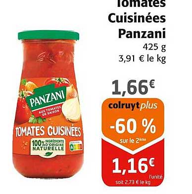 Découvrez les Tomates Cuisinées Panzani, un ingrédient essentiel pour toutes vos recettes savoureuses. Disponible uniquement chez Colruyt, cette promotion est l'occasion rêvée d'ajouter une touche de goût et de qualité à vos plats favoris. Que vous prépariez des sauces, des ragoûts ou des plats en sauce, ces tomates sont la base parfaite pour rendre vos repas encore plus délicieux.