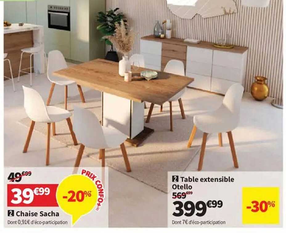 Découvrez l'offre de 2 Chaise Sacha 2 Table Extensible Otello chez Conforama! Cette offre fantastique est maintenant disponible dans le nouveau catalogue de Conforama. Profitez de cette occasion et économisez considérablement sur votre achat.