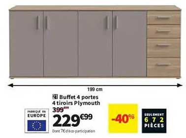 Découvrez dès maintenant la offre Buffet 4 portes 4 tiroirs Plymouth dans le catalogue de Conforama. Cette offre est valable du 01/04/2025 au 21/04/2025.