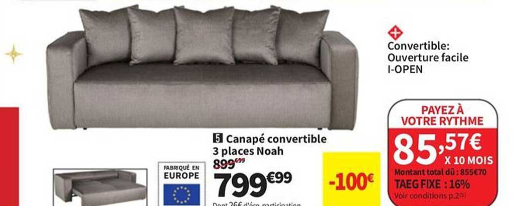 Découvrez l'offre de Canapé Convertible 3 Places Noah chez Conforama! Cette offre fantastique est maintenant disponible dans le nouveau catalogue de Conforama. Profitez de cette occasion et économisez considérablement sur votre achat.
