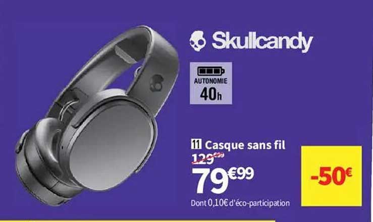 Vous êtes à la recherche d'un casque sans fil à la fois performant et élégant ? Ne cherchez plus ! Sur cette page, découvrez le casque sans fil Skullcandy, une offre incontournable qui saura satisfaire tous les mélomanes. Avec une autonomie impressionnante de 40 heures, vous pourrez écouter votre musique préférée sans interruption, que ce soit à la maison ou en déplacement.