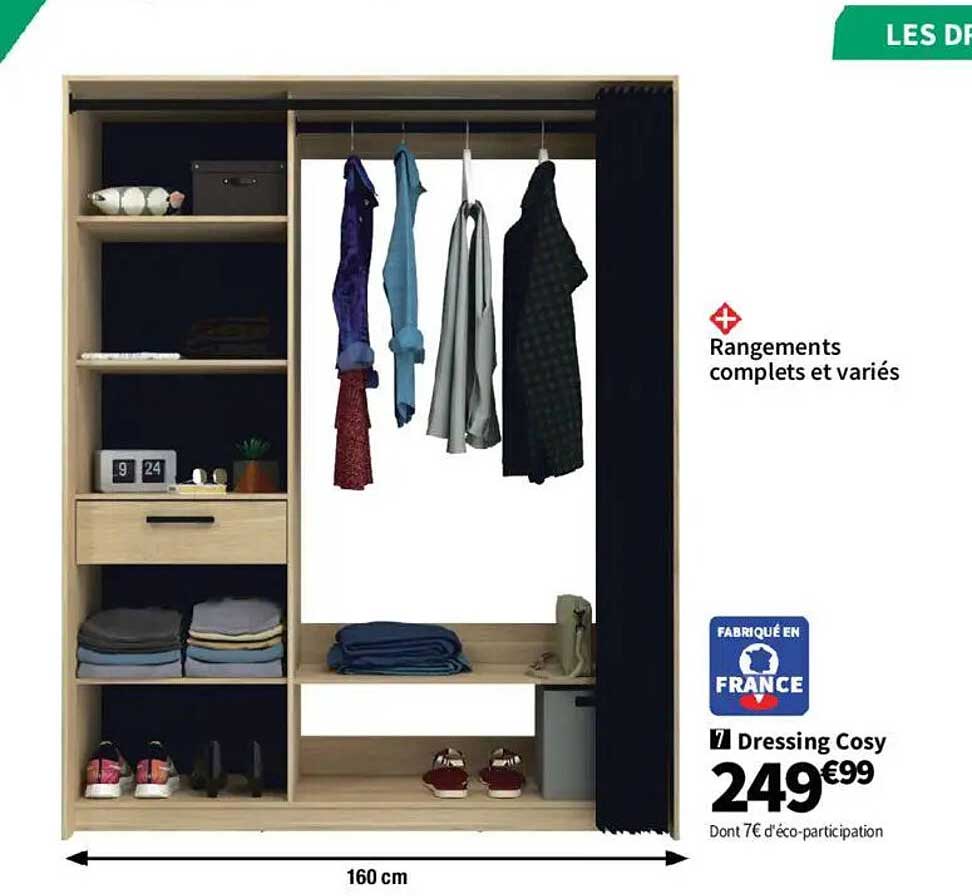Découvrez le Dressing Cosy, une solution parfaite pour toutes vos envies de rangement. Avec ses rangements complets et variés, cet élément de mobilier est idéal pour optimiser l'espace dans votre chambre ou votre entrée. Profitez de cette offre valable jusqu'au 25 décembre 2025 pour transformer votre intérieur avec style et fonctionnalité.