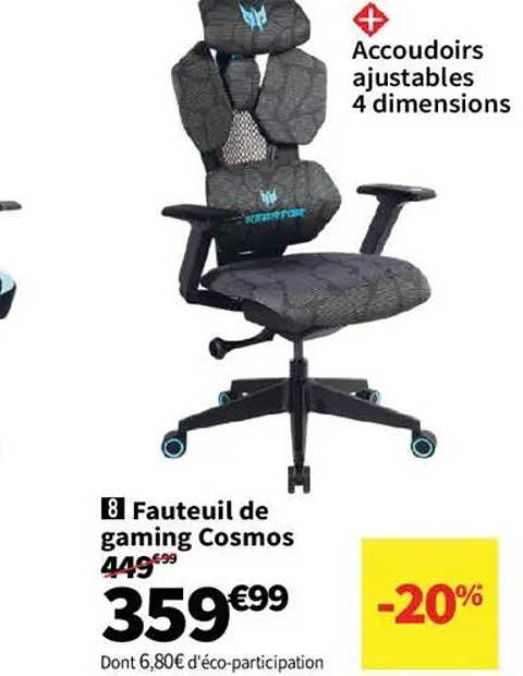 Vous cherchez un fauteuil qui allie confort et style? Le fauteuil de gaming Cosmos est fait pour vous! Actuellement en promotion chez Conforama, cette chaise de gamer vous offre un excellent support pour vos longues sessions de jeu ou de travail. Disponible jusqu'au 25 décembre 2025, c'est le moment idéal pour investir dans votre confort.