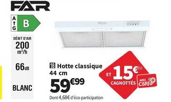Découvrez dès maintenant la offre Hotte classique 44 cm dans le catalogue de Conforama. Cette offre est valable du 30/09/2025 au 27/10/2025.