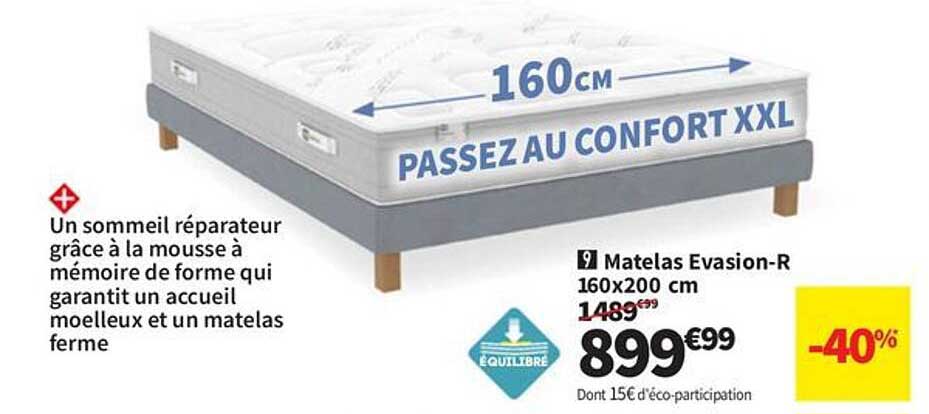 Découvrez la superbe offre de Matelas Evasion-R 160X200 Cm dans le nouveau catalogue de Conforama. En plus de cette offre, vous trouverez de nombreuses autres réductions attrayantes. Vous pouvez facilement commander le Matelas Evasion-R 160X200 Cm en ligne via le site web de Conforama ou l'acheter dans un magasin près de chez vous.