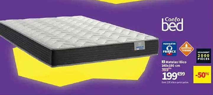 Initialement proposé à 385€, le matelas Illico est désormais à seulement 199€ (soit une réduction de 50%). Cette offre incroyable vous permet de réaliser d'importantes économies tout en investissant dans un produit de qualité. De plus, pour un prix total de 199€ plus 11€ de déco participation, vous ne trouverez pas meilleur rapport qualité/prix.