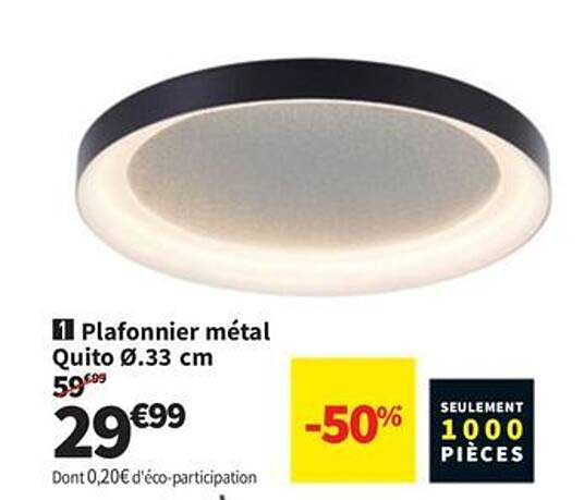 Découvrez la superbe offre de Plafonnier Métal Quito Ø.33 Cm dans le nouveau catalogue de Conforama. En plus de cette offre, vous trouverez de nombreuses autres réductions attrayantes. Vous pouvez facilement commander le Plafonnier Métal Quito Ø.33 Cm en ligne via le site web de Conforama ou l'acheter dans un magasin près de chez vous.