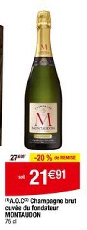 Découvrez l'offre de A.o.c. Champagne Brut Cuvée Du Fondateur Montaudon chez Cora! Cette offre fantastique est maintenant disponible dans le nouveau catalogue de Cora. Profitez de cette occasion et économisez considérablement sur votre achat.