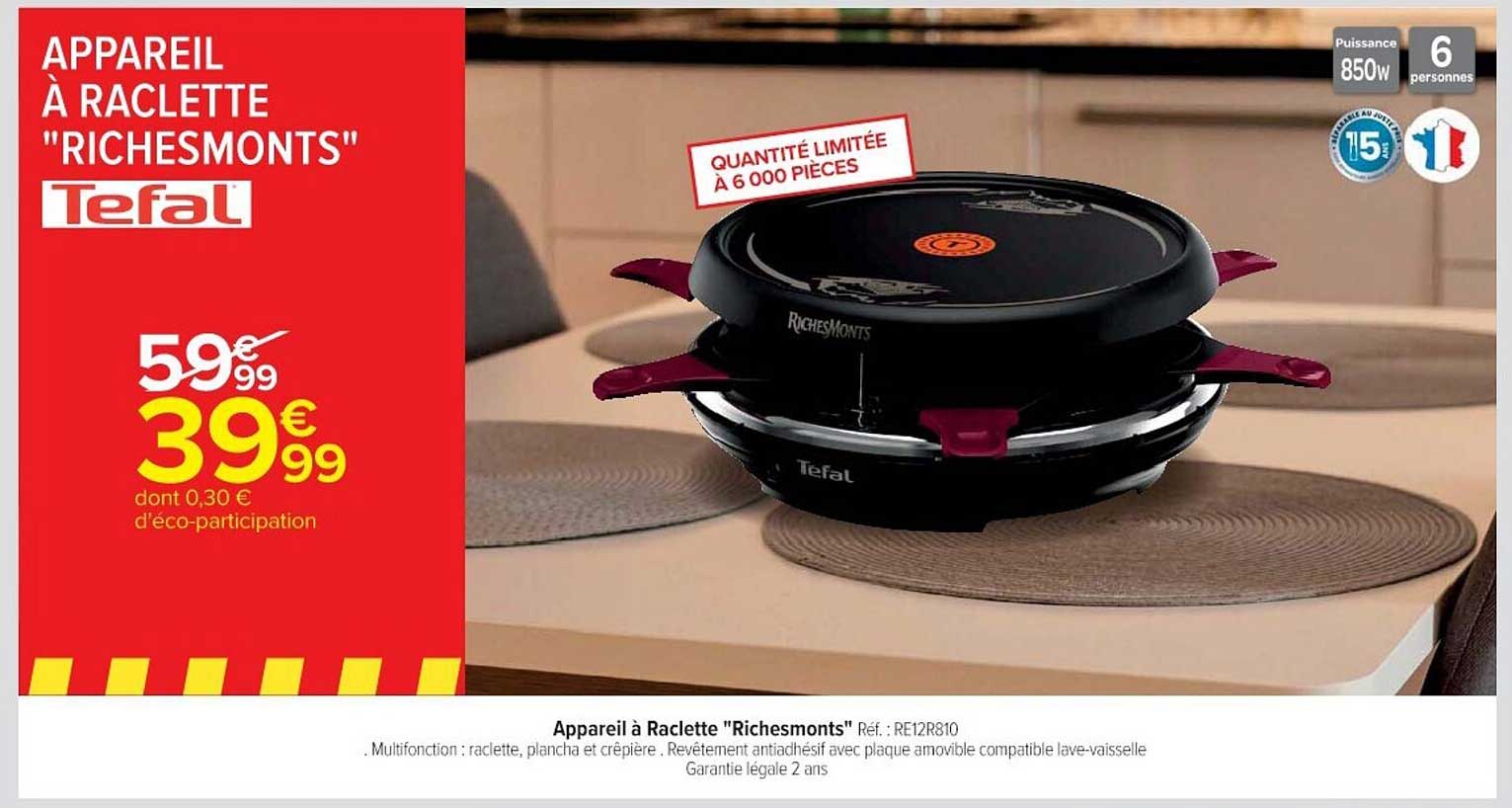 Offre de Appareil À Raclette "Richesmonts" Tefal chez Cora