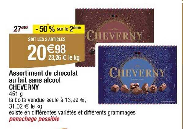 Découvrez dès maintenant la offre Assortiment de chocolat au lait sans alcool CHEVERNY dans le catalogue de Cora. Cette offre est valable du 10/12/2024 au 31/12/2024.