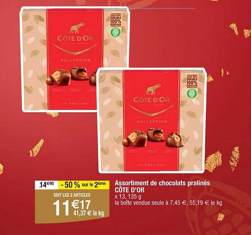 Découvrez le Assortiment De Chocolats Pralines Côte D'or