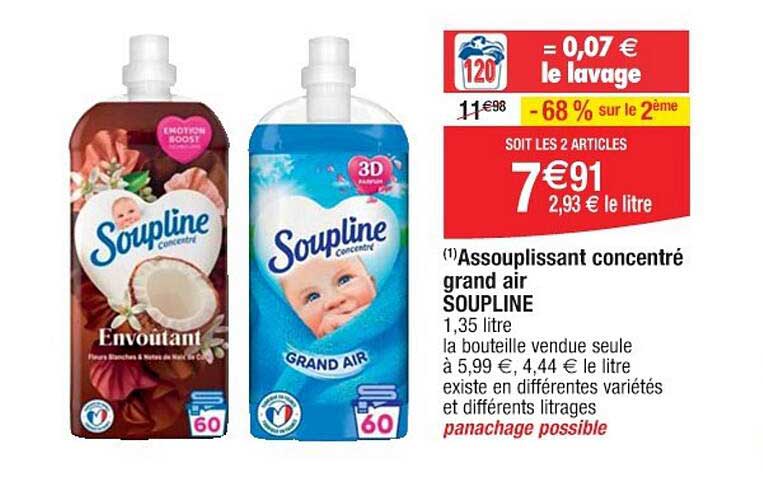 Découvrez l'offre de Assouplissant Concentré Grand Air Soupline chez Cora! Cette offre fantastique est maintenant disponible dans le nouveau catalogue de Cora. Profitez de cette occasion et économisez considérablement sur votre achat.