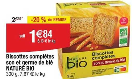 Offre de Biscottes Complètes Son Et Germe De Blé Nature Bio chez Cora