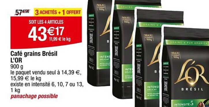 Découvrez la superbe offre de Café Grains Brésil L'or dans le nouveau catalogue de Cora. En plus de cette offre, vous trouverez de nombreuses autres réductions attrayantes. Vous pouvez facilement commander le Café Grains Brésil L'or en ligne via le site web de Cora ou l'acheter dans un magasin près de chez vous.