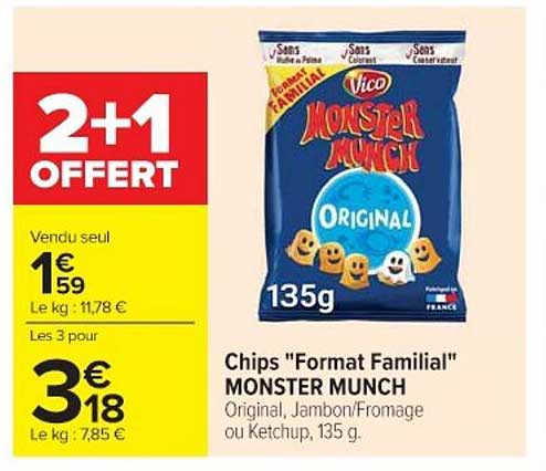 Offre de Chips "Format Familial" Monster Munch chez Cora