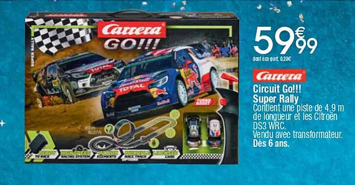 Découvrez la superbe offre de Circuit Go!!! Super Rally dans le nouveau catalogue de Cora. En plus de cette offre, vous trouverez de nombreuses autres réductions attrayantes. Vous pouvez facilement commander le Circuit Go!!! Super Rally en ligne via le site web de Cora ou l'acheter dans un magasin près de chez vous.
