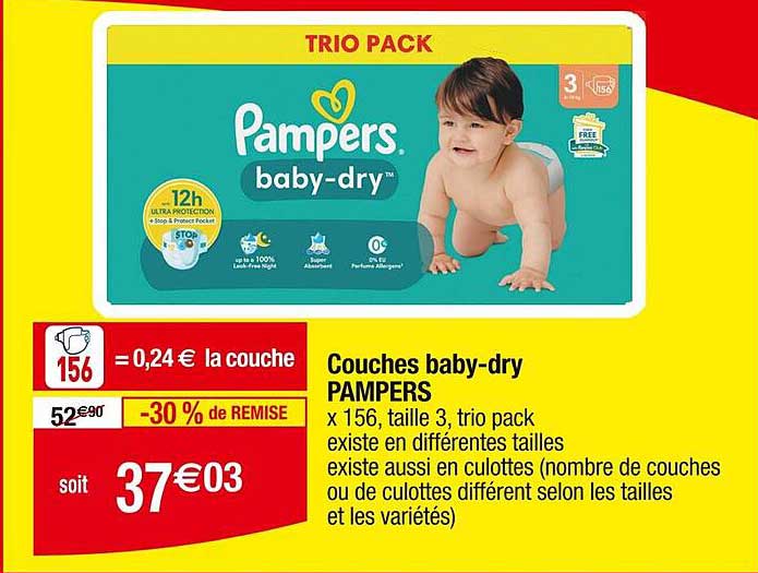 Découvrez l'offre de Couches Baby-Dry Pampers chez Cora! Cette offre fantastique est maintenant disponible dans le nouveau catalogue de Cora. Profitez de cette occasion et économisez considérablement sur votre achat.