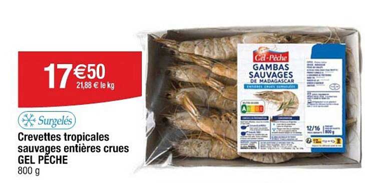 Offre de Crevettes Tropicales Sauvages Entières Crues Gel Pêche chez Cora