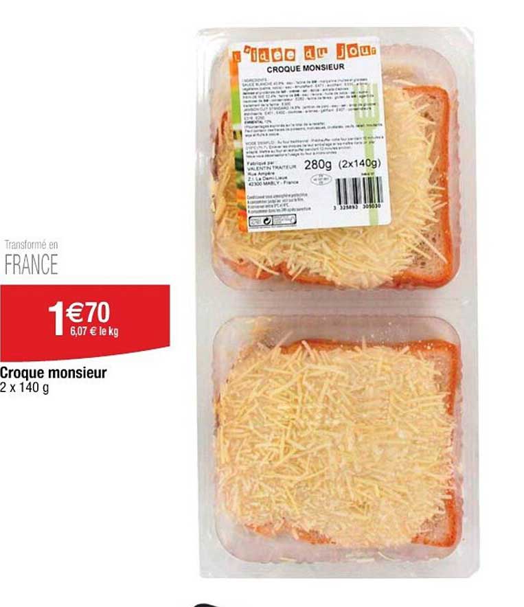 Découvrez la superbe offre de Croque Monsieur dans le nouveau catalogue de Cora. En plus de cette offre, vous trouverez de nombreuses autres réductions attrayantes. Vous pouvez facilement commander le Croque Monsieur en ligne via le site web de Cora ou l'acheter dans un magasin près de chez vous.