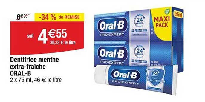 Offre de Dentifrice Menthe Extra-Fraîche Oral-B chez Cora