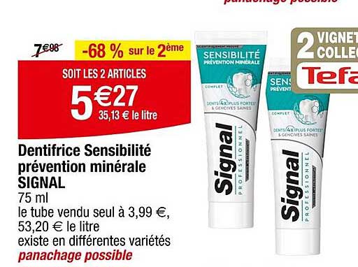 Découvrez l'offre de Dentifrice Sensibilité Prévention Minérale Signal chez Cora! Cette offre fantastique est maintenant disponible dans le nouveau catalogue de Cora. Profitez de cette occasion et économisez considérablement sur votre achat.