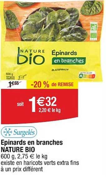 Offre de Épinards En Branches Nature Bio chez Cora
