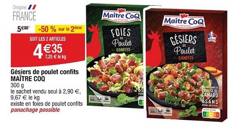 Offre de Gésiers De Poulet Confits Maître Coq chez Cora