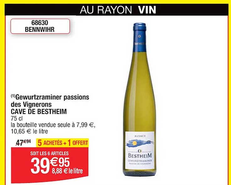 Découvrez l'offre de Gewurztraminer Passions Des Vignerons Cave De Bestheim chez Cora! Cette offre fantastique est maintenant disponible dans le nouveau catalogue de Cora. Profitez de cette occasion et économisez considérablement sur votre achat.
