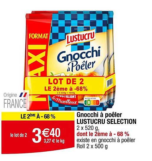 Découvrez la superbe offre de Gnocchi À Poêler Lustucru Selection dans le nouveau catalogue de Cora. En plus de cette offre, vous trouverez de nombreuses autres réductions attrayantes. Vous pouvez facilement commander le Gnocchi À Poêler Lustucru Selection en ligne via le site web de Cora ou l'acheter dans un magasin près de chez vous.