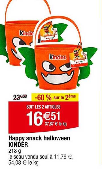 Découvrez l'offre de Happy Snack Halloween Kinder chez Cora! Cette offre fantastique est maintenant disponible dans le nouveau catalogue de Cora. Profitez de cette occasion et économisez considérablement sur votre achat.