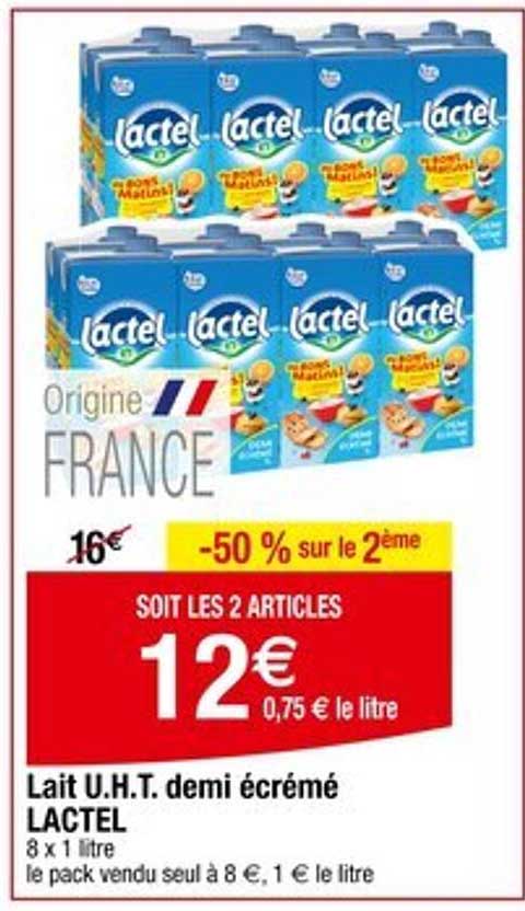 Offre de Lait U.h.t. Demi Écrémé Lactel chez Cora